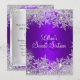 Convite de Aniversário de 16 anos Roxo e Prata Inverno Encantado. Design elegante de floco de neve em diamante. Por favor, note: Todas as imagens planas, elas não têm joias reais!