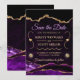 Convite Roxo Dourado Brilho Ágata e mármore Salve a Data