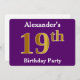 Convite Roxo, Faux Dourada 19ª Festa de aniversário; Nome