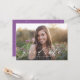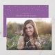 Comemore o formando com nossos convites para festa de formatura de fotos do Sweet Script. Os convites elegantes de festa de formatura exibem a foto do formando com "formando" em uma fonte de script chic que sobrepõe a placa. Personalize a frente dos convites de festa de formatura personalizados adicionando o nome do formando, a escola e o ano de graduação. O lado inverso do convite apresenta um fundo roxo com pontos brancos nos limites de um espaço para os detalhes da sua festa de formatura.