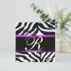 Convite ROXO PRETO BRANCO PELÚCIA ZEBRA MONOGRAMA , ametis