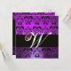 CONVITE ROXO PRETO DAMASCO MONOGRAMA AMETISTA METAL PRATA