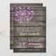 Convite à festa de solteira com lavanda roxo, rosa claro, verde claro, flor, design floral na zona de colheita russa ocidental, madeira castanha, fundo impresso de madeira com fontes elegantes e antigas. Perfeito para Festas de solteira de temas de campo, fazenda, fazenda, caserna! Este convite giro e divertido é o excelente ano redondo para primavera, verão, outono ou festas de solteira de inverno!