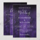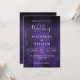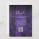 Este convite de casamento roxo feito em madeira de fundo de madeira de boho pode ser personalizado com suas informações em tipografia moderna e um site de casamento com código QR no verso. Projetado por Thisnotme©