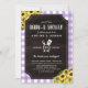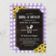 Convite Roxo Rústico Gingham Sunflower Baby-Q Chá