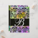 Convite ROXO VERDE AMARELO PRETO DAMASCO MONOGRAMA , branc