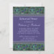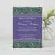 Convite verde e roxo do jantar de ensaio da pena do pavão, você pode mudar a pia batismal, cor, tamanho e adicionar seu próprio texto.