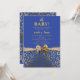 Convite Royal Azul e Dourado Glam Estampa de Leopardo Baby