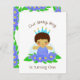 Cute little baby prince with blue flowers around on white background for first birthday party