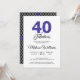 Um convite para fotos de aniversário de 40 anos, elegante e chique que você pode personalizar e enviar para sua festa de quadragésima festa de aniversário. As palavras "40 e Fabuloso" em brilho azul preto e real são definidas com a tipografia moderna. Há um padrão geométrico preto-e-branco na parte de trás da carta com fitas brilhantes azuis reais. Se precisar de ajuda ou de produtos correspondentes, entre em contato conosco na loja.