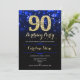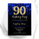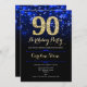convite de aniversário 90. Elegante design azul real com ouro brilhante. Apresenta na moda diamante, luzes e fontes de script. Homens ou mulheres convidam no dia. Perfeito para uma festa de aniversário adulta na moda. Personalize com seus próprios detalhes. Envie-me uma mensagem se precisar de mais personalização. Impressos convites Zazzle ou modelo de impressão digital instantânea para download.