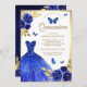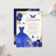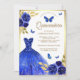 Convite Royal Blue Floral Borboleta Dourada Quinceanera
