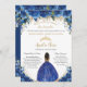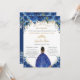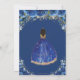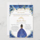 Convite Royal Blue Floral Dama Pedido Dourado Quinceañera