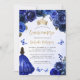 Convite Royal Blue Floral Watercolor Quinceañera