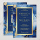 Convite Royal Blue Gold Fluid Ink QR Code Wedding