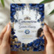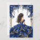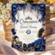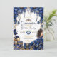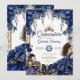 Convite Royal Blue Golden Tiara Floral Quinceañera