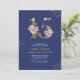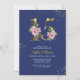 Convite Royal Blue & Pink Magnolia Floral Quinceanera