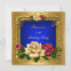 Convite Royal Blue Red Cream Rosas Elegante Dourado Aniver