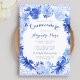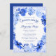 Elegante azul real Quinceanera convite com uma coroa floral e arestas cintilantes. Esse convite formal é uma mistura perfeita entre o tradicional e o moderno. Personalize facilmente usando os campos de modelo online. A redação pode ser mudada para espanhol.