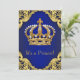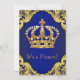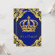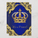 Chá de fraldas real azul e ouro príncipe com rico azul e coroa dourada em um elegante fundo azul real e rolo dourado. Este convite para chás de fraldas real, azul e ouro, é facilmente personalizado para o seu evento simplesmente adicionando os seus detalhes no estilo de fonte e cor, texto e layout da sua escolha. Você também pode mover as coroas conforme necessário.