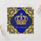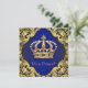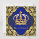 Rico príncipe bebê faz convites com coroa azul e dourada sobre um elegante fundo azul real e espiral dourado. Este belo convite para chás de fraldas royal blue e gold prince é facilmente personalizado para o seu evento simplesmente adicionando os seus detalhes no estilo de letra e cor, redação e disposição da sua escolha.