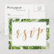 Convite RSVP — Cartão postal de ouro tropical e casamento