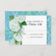Com arte original pintada à mão e desenhada graficamente por Audrey Jeanne. Cartão de resposta RSVP para convites de casamento. Criado em estilo vintage, mas com ilustrações recém-criadas de redemoinhos damasco em tons de azul, desde aqua até azul celeste. Flores brancas de hortênsia caem ao longo da borda do painel lateral do design. Direitos autorais, Audrey Jeanne Roberts.