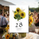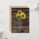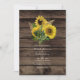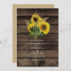 Outono - Queda de convite para casamento no interior do celeiro rústico apresentando girassóis em fundo de madeira. Ideal para qualquer tema ou casamento de jardim. O código QR no verso direciona para o seu local de casamento onde o pessoas pode aprender mais e rsvp.