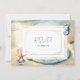 Cartões RSVP de casamento românticos e elegantes da costa oceânica. Areia macia e marrom, água azul pálida com um dólar na praia. Cavalo do mar com aquarela e peixe-estrela.