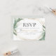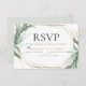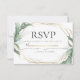 WEDDING RSVP | Folhas verdes tropicais modernas e elegantes em torno de uma estrutura geométrica de tipo terrário multifacetada dourada. O reverso é uma cor complementar coordenada. Personalizar texto, estilo de fonte, cor e tamanho. Arte original criada para o BarefootBride™ por © WhimsicalArtwork™ - Esta é parte de um Conjunto completo de Artigos de Casamento, chá de fraldas e outros artigos de papelaria para eventos semelhantes.