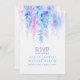 Convite RSVP de casamento em azul roxo em cascata aquarela