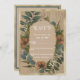 Madeira marrom-rustica com cor verde, laranja escuro e uma bela folhagem dourada desenhada à mão, convites RSVP de Casamento Floral de Floresta. Este na moda moderno convite para abstrato é perfeito para qualquer garota clássica e chique. Este design é ideal para um evento de festa de moda. Personalize este design com sua mensagem e informações personalizadas. Todas as designs são impressas