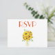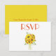 Um belo convite para a RSVP de girassol, a frente apresenta um fundo branco, ali está um dentro de girassol amarelo de um vaso claro com uma maré arco azul ao redor do pescoço. "RSVP" está escrito no topo com uma bela fonte laranja. As costas continuam com informações importantes sobre um fundo amarelo. Personalize o seu hoje! Design do Convite: WeddingsbyRhoadie Floral trabalho de arte: AMBilustrações http://www.etsy.com/shop/AMBillustrations/