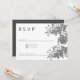 Convite RSVP de renda floral simples preto branco brilhant