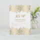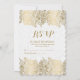 Elegante renda paisley floral dourada em cartão de RSVP de casamento branco.