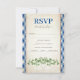 Este cartão RSVP vem enfeitado com um design de mesa de piquenique azul que combina com a minha suite de árvore de parque verde. O design de papel vintage é transportado para a parte de trás do cartão de resposta do casamento. Perfeito para casamentos de verão, quintal eu faço churrasco, biscoito, reunião familiar, festa de aposentadoria ou o que quiser. Este é um design único de alta qualidade. Para ver mais convites visite o VG Invites em www.zazzle.com/vginvites