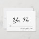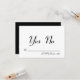 Um dramático "XO" prateado decora a parte de trás deste RSVP preto e prateado elegante. Este estilo é ainda mais aprimorado com uma simples resposta Sim/Não para circular. Role para baixo para ver itens coordenados nesta nova coleção da moda.