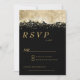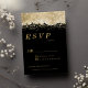 Um elegante convite de RSVP de Casamento de Cabeças de Azoto, Ouro, e Glitter Conetti de Luxo de Prata é a design perfeita para complementar um evento clássico e sofisticado. Apresenta ouro brilhante e brilho prateado com ouro simples e elegante e tipografia dourada sobre fundo preto. Este design tradicional, único e clássico impressionará todos os seus convidados. Todas as designs são impressas.