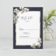 Convite RSVP floral de orquídea branca de ouro azul-marinh