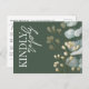 Adicione este cartão postal RSVP exclusivo ao seu papel de carta de Convite. Este design apresenta eucalipto e folhagem em verde-sábio e bege pintado em aquarela. No sentido inverso está o espaço para o seu convidado responder e o seu endereço de retorno.