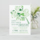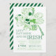Comece a sua Rua, a comemoração do dia da Patty, com a nossa comida moderna e divertida, bebam e sejam Ruas irlandesas. convite de festas do Patrick. Nosso convite de na moda e moda apresenta uma enorme shamrock cheio de símbolos irlandeses... uma garrafa de cerveja, caneca de cerveja, shamrock, leprechaun e um pote de ouro em um fundo branco contemporâneo e popular. Sacudir o convite para encontrar uma faixa verde e branca para um toque especial extra.