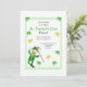 Uma Rua simples e festiva. convite de festas do Dia de Patrick com o meu design de um duende dançante, shamrocks e texto de amostra personalizável.