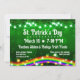 Rua divertida, convite para o dia de Patrick com luz de shamrock e um arco-íris brilhante e brilhante com moedas de ouro em fundo verde.