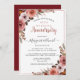 Convite de aniversário de casamento de 40º (ou outro) requintado com detalhes em dourado-rosado e elementos florais em aquarela pintados à mão em tons de rosa e burgundy. Possibilidade de alterar o número do aniversário de casamento para atender às suas necessidades. Uso de caligrafia elegante manuscrita e tipografia moderna. Verso do cartão em tom de rubi vermelho, burgundy com detalhe floral cativante no centro. Produtos coordenados disponíveis. Parte da nossa coleção "Heaven in Rose" de casamento e eventos.