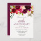 Convite Rubis Vermelho Borgonha Floral 40º Aniversário de