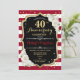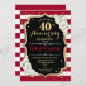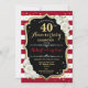Convite de aniversário de casamento de 40 anos vermelho rubi. Convite elegante em vermelho, preto e branco com dourado brilhante falso. Apresenta listras elegantes, fonte script e rosas brancas. Perfeito para uma celebração de 40 anos de aniversário de casamento.