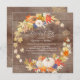 Folhas rústicas de outono com abóboras de chá de chá de panela com uma fonte moderna de caligrafia. Sacudir nosso convite para o chá de casamento para ver uma coordenação de madeira rústica para um toque especial. Fácil de personalizar com as informações da sua festa. Visite nosso compro para ver nossas folhas de outono e a coleção de abóbora.