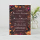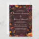 Vermelho escuro e sangrento fornece o fundo luxuoso para este convite para Casamentos outono. Rústico, flores silvestres de Boho fornecem a estrutura em laranja verde, preto e cobre profundo. Flores roxas e cor-de-rosa acendem um pouco. Perfeito para o outono tardio ou o casamento do Halloween. O texto branco tem um pouco de vibração sobre ele.
