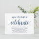 Cartão de convite temático Russo Moderno, Marinho Azul Script (com título do cartão: agora é hora de celebrar). É perfeito para sua recepção de elopemento de casamento/festa de celebração de posto. Adicione seus detalhes em caracteres pretos / letras correspondentes. #TeeshaDerrick