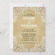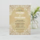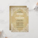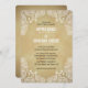 Este convite de casamento no estilo rústico apresenta um padrão paisley branco desenhado à mão em todos os quatro cantos. O fundo é um ouro rústico.